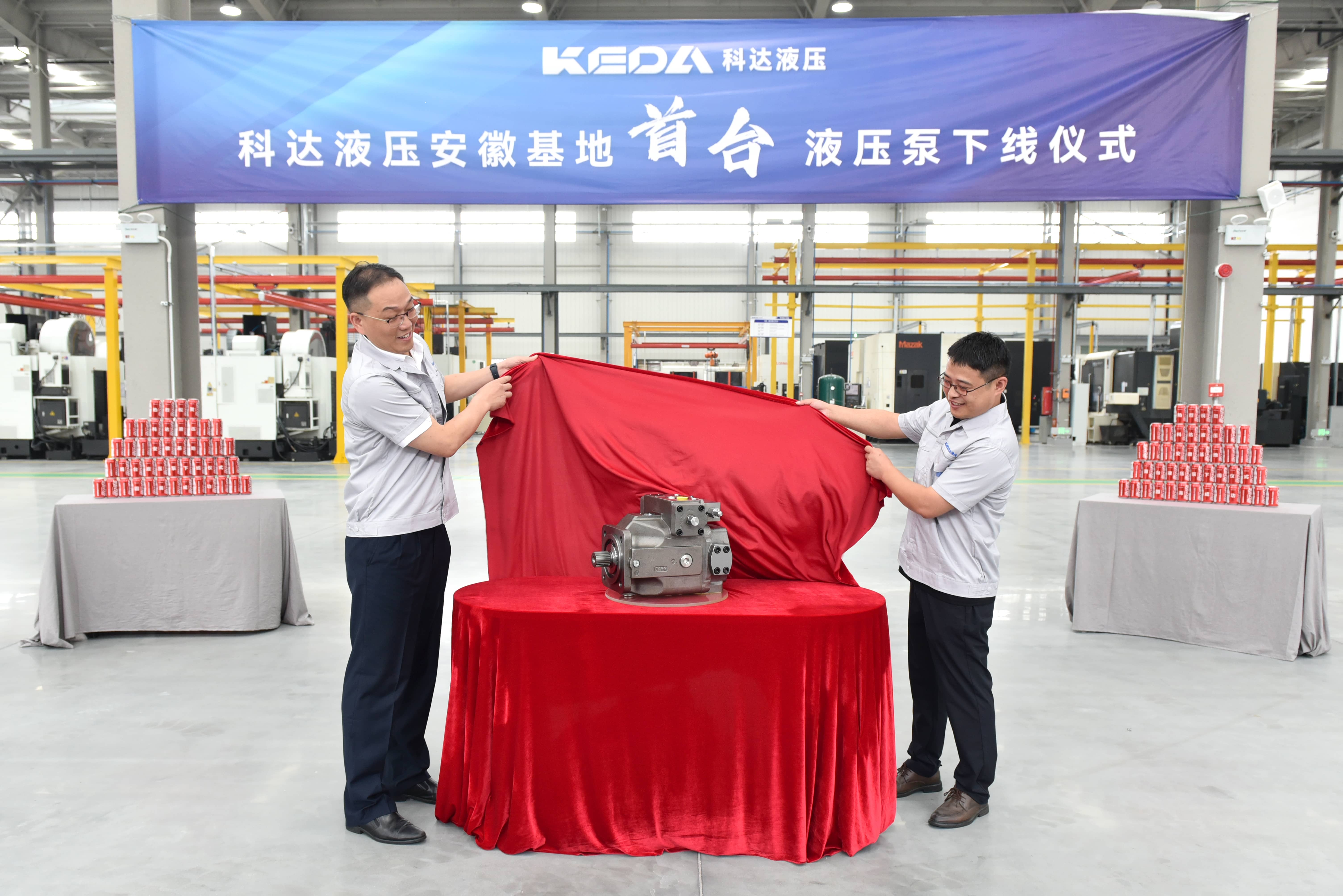 In a highlight moment, GM Mr. Xiaohui CHEN and Executive VP Mr. Zhengfu LIU jointly unveiled the first hydraulic pump in this brand new workshop. The K4V200 hydraulic pump, which officially rolled off the line, is one of KEDA Hydraulic’s most popular market products.
