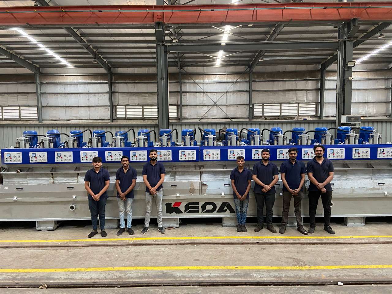 Right: The first polishing machine independently modified and refurbished by Indian employees of KEDA India makes its debut