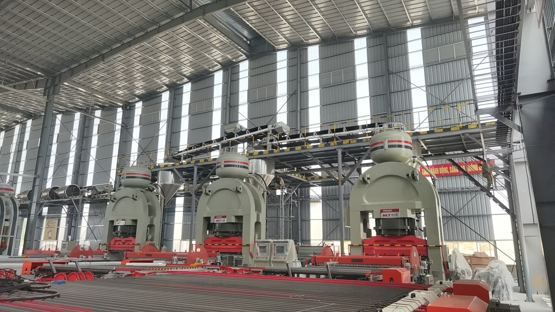 It is understood that this production line is renowned for its high-end and state-of-the-art designs. The pulverizing, molding, and firing machinery are all equipped with multiple patented technologies. This project stands as the most representative complete production line project in Vietnam, boasting the largest capacity for roof tile production and featuring highly advanced automation.