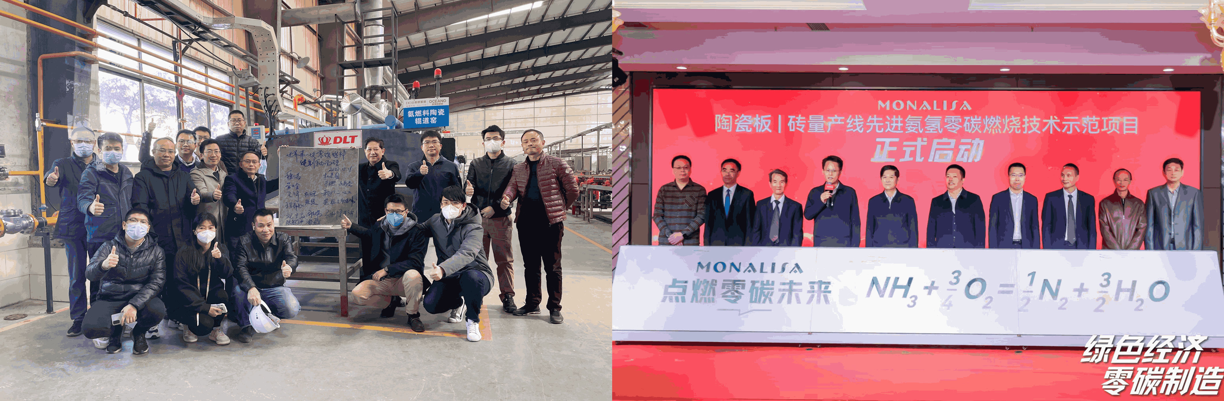 On October 28, 2023, DLT, Foshan Xianhu Laboratory, Oushenno, Monalisa, and Anqing Technology launched the "Ceramic Slab and Tile Mass Production Line Advanced Ammonia-Hydrogen Zero Carbon Combustion Technology Demonstration Project". They plan to launch the production line in the second half of 2024.