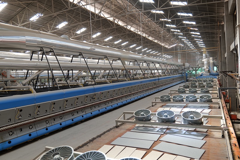The new production line of Caiba Ceramics in Quanzhou, Fujian mainly produces thick tiles with thickness 18mm from 300×300(mm) to 600×1200 (mm), the water absorption from 0.2%-0.3%, and the designed output of the kiln is 12,000㎡/day. The current output reaches 13,000 ㎡/day, and the annual output can reach 4.6 million ㎡.